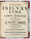 GERIKE Peter – Dissertatio physica de inflvxv lvnae in corpvs hvmanvm. Halae Magdeburgicae 1727. Typis Ioh. Christiani Hilligeri. 4, s. [4], 24. opr. wsp. psk.