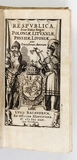 RESPVBLICA, Siue Status Regni Poloniae, Litvaniae, Prvssiae, Livoniae, etc. Diuersorum Autorum. Lvgd[uni] Batavorum [= Lejda] 1642. Ex Officina Elzeviriana. 11,5x6 cm, s. [4], 417, [12]. opr. perg. z epoki, obcięcie barwione.