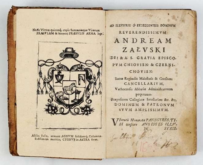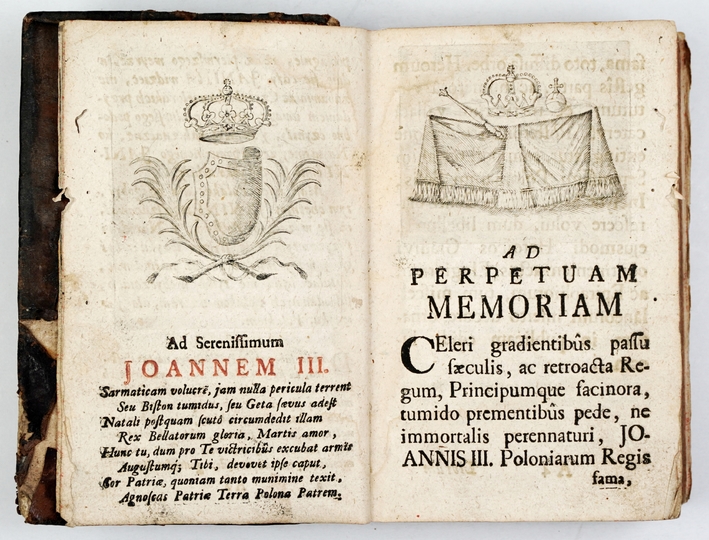 RUBINKOWSKI Jakub [Kazimierz] – Janina Zwycięzkich Tryumfow dziełami Y Heroicznym Męstwem Jana III. Krola Polskiego na Marsowym Polu nayiasnieyszy po przełamaney Otomańskiey y Tatarskiey sile Nieśmiertelnym wiekom do druku podany [...]. W Poznaniu 1759. W Drukarni J. K. M. Kollegium Poznańskim Societatis Jesu. 8, s. [484], tabl. 2. opr. skóra z epoki.