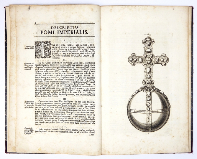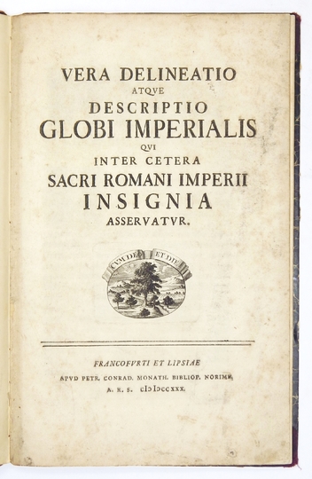 ESCHENBACH Ebner Hieronymus von – Vera Delineatio atqve Descriptio Globi Imperialis qvi inter cetera Sacri Romani Imperii Insignia asservatvr. Francofvrti et Lipsiae 1730. Petr. Conrad Monath. folio, s. 15, tabl. 1. opr. XIX-w. psk.