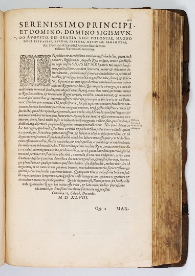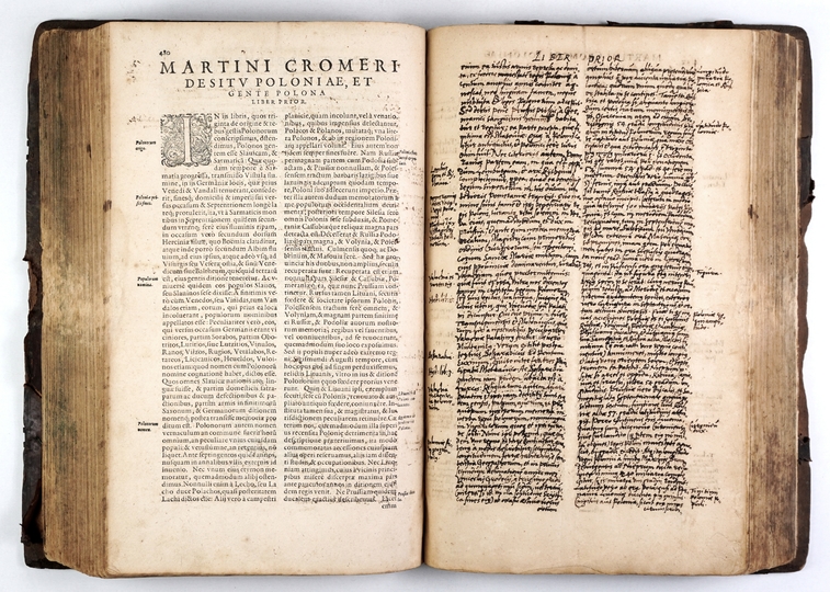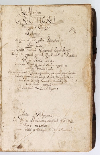 KROMER Marcin – [Polonia siue de origine et rebus gestis, Polonorum libri XXX. Oratio funebris Sigismundi. primi regis. Deque situ, populis, moribus, magistratibus et republica regni Poloniae, libri duo. Omnia nunc ultimo ab ipsomet auctore recognita, ac multis locis emendata et aucta. His accesserunt recens ad historiae continuationem, quae sequens pagina demonstrat et chartae geographicae cum Poloniae, Prussiae, Masoviae, Russiae etc. tum etiam Lituaniae, Liuoniae et Moscoviae, aeneis formis expressae. Coloniae Agrippinae 1589. In officina Birckmannica, sumptibus Arnoldi Mylij]. folio, s. [6], 846, [60]. opr. z epoki skóra tłocz. na desce.