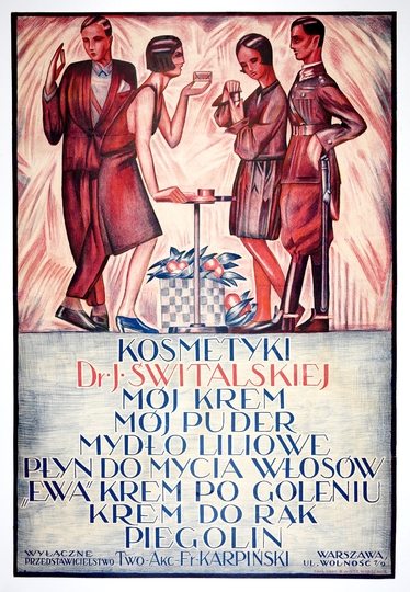 KOSMETYKI Dr. J. Świtalskiej. Mój krem, mój puder, mydło liliowe, płyn do mycia włosów, "Ewa" krem po goleniu, krem do rąk, piegolin. [193-?].