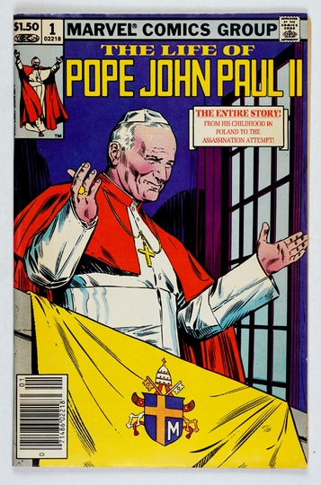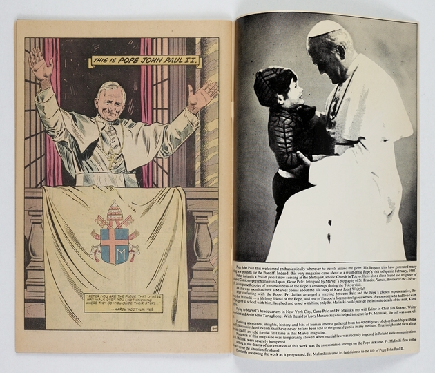 [JAN Paweł II]. The Life of Pope John Paul II. Scen. Steven Grant. Rys. J. Tartaglione, Joe Sinnott. New York 1982. Marvel Comics Group. 8, s. 64. brosz.