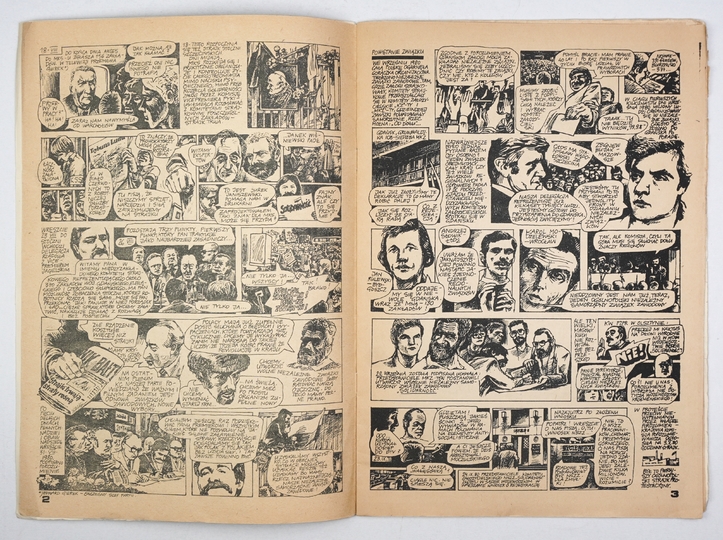 SOLIDARNOŚĆ - 500 pierwszych dni. Scen. [Jan Marek Owsiński]. Rys. [Jacek Fedorowicz]. [b.m.] [1984]. 4, s. 16. brosz.