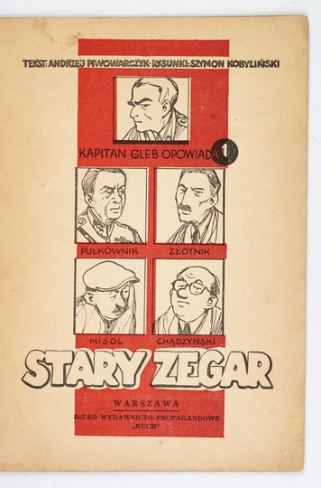 STARY zegar. Scen. Andrzej Piwowarczyk. Rys. Szymon Kobyliński. Warszawa [1957]. Biuro Wydawniczo-Propagandowe "Ruch". 8, s. [2]. 21, [1]. brosz. Kapitan Gleb opowiada, [nr] 1.