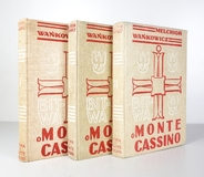 WAŃKOWICZ Melchior – Bitwa o Monte Cassino. T. 1-3. Rzym-Mediolan 1945-1947. Oddz. Kultury i Prasy 2 Polskiego Korpusu. 8, s. 447, [1], mapy 2; 392, tabl. 1, mapy 2; 385, [31], tabl. 1, mapa 1. opr. oryg. pł. zdob.