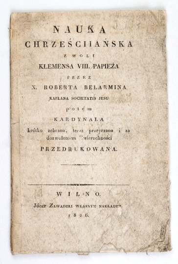 BELLARMIN Robert – Nauka chrześciiańska z woli Klemensa VIII. papieża przez ... [...] krótko zebrana, teraz przeyrzana [...]. Wilno 1826. Nakł. J. Zawadzki. 16d, s. 32. brosz.