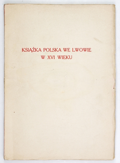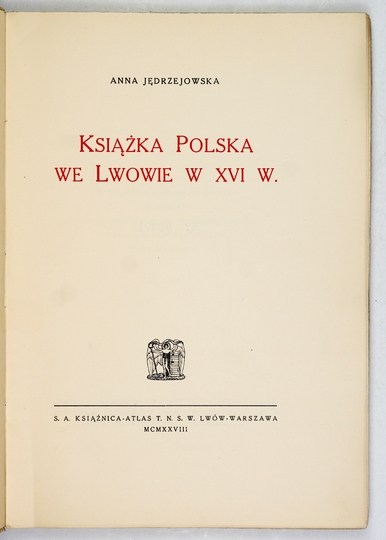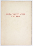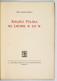 JĘDRZEJOWSKA Anna – Książka polska we Lwowie w XVI w. Lwów-Warszawa 1928. Książnica-Atlas. 8, s. X, [2], 112, [3], tabl. 2. brosz.