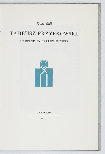 GALL Franz – Tadeusz Przypkowski, en polsk exlibriskunstner. Rudkøping 1963. Grafolio. 16d, s. 21, [2], tabl. 10. brosz. Kunstner-monografi, nr 2.