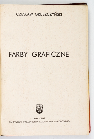 GRUSZCZYŃSKI Czesław – Farby graficzne. Warszawa 1960. Państwowe Wydawnictwa Szkolnictwa Zawodowego. 8, s. 260, [1]. opr. oryg. ppł.