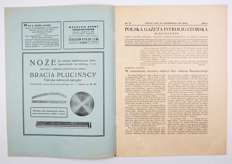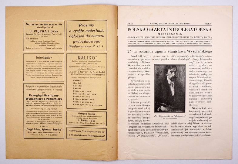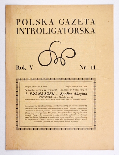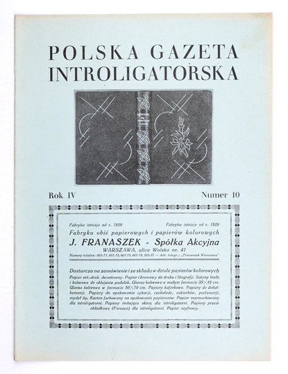POLSKA Gazeta Introligatorska. Miesięcznik. Organ Centr. Związku Cechów Introligatorskich na Rzplitą Polską. Poznań. Wyd. Ignacy Kozłowski. 4. brosz.