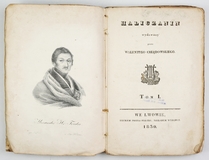 HALICZANIN wydawany przez Walentego Chłędowskiego. T. 1-2. Lwów 1830. Druk. P. Pillera, nakł. wydawcy. 8. s. [4], VIII, [9]-270, [2], tabl. 1; [4], 362, [1], tabl. 1. brosz.