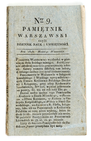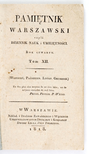 PAMIĘTNIK Warszawski czyli dziennik nauk i umieiętności. Warszawa. Nakł. Zawadzkiego i Węckiego. 16d. brosz.