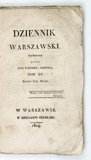 DZIENNIK Warszawski wydawany przez Jana Kazimierza Ordyńca. Warszawa. Druk. Szkolna. 16d. brosz.