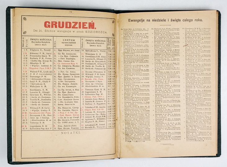 [KALENDARZ]. Jutrzenka. Kalendarz dla wsi i miast na rok 1918 zwyczajny. Wydawnictwa rok 9. Kijów. Księg. Leona Idzikowskiego. 8, s. 16, szp. 17-110, s. [1]. opr. wsp. pł. z zach. okł. brosz.
