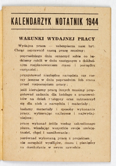 KALENDARZYK - Notatnik 1944. Warszawa. Wydawnictwo Polskie Sp. z o.o. 16, s. 31, [1]. brosz.