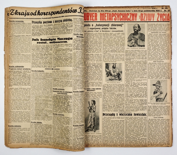 KURJER Metapsychiczny "Dziwy Życia". Dodatek do Ilustrowanego Kurjera Codziennego. [Red. Ludwik Szczepański] - fragmenty. Kraków. Druk IKC. folio.