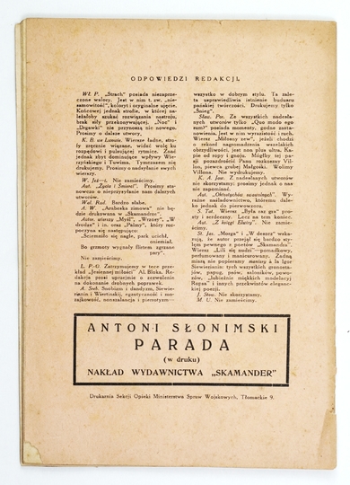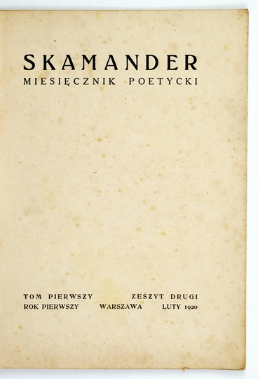 SKAMANDER. Miesięcznik poetycki. Warszawa. Komitet red. 8. brosz.