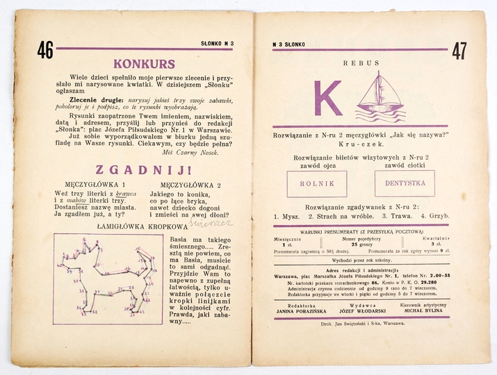SŁONKO. Tygodnik dla dzieci. Warszawa. Red. J. Porazińska. 8. numery luzem.