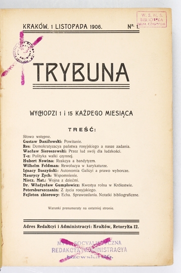 TRYBUNA. Kraków. Red. T. Bobrowski. 8. razem opr. pł. z epoki.