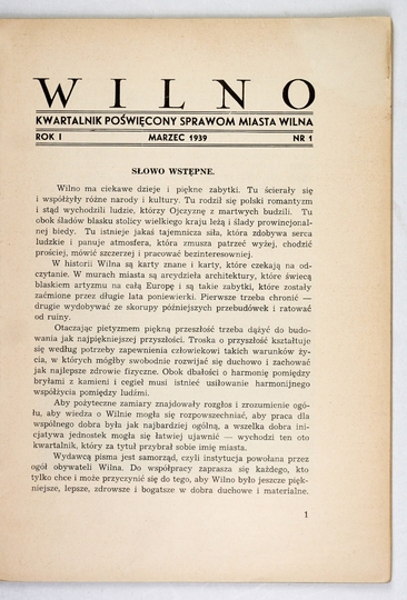 WILNO. Kwartalnik poświęcony sprawom miasta Wilna. Wilno. Red. A. Wasilewski. Wyd. Zarząd Miejski. 8. brosz.