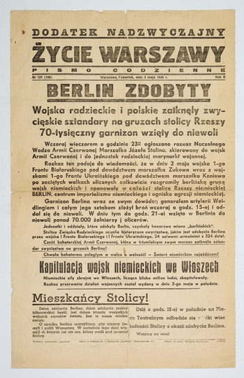 R. 2, nr 121 (190), Dodatek nadzwyczajny: 3 V 1945. s. [1].