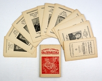 [KARTY, gra towarzyska]. Kwartet literacki. Zajmująca i pouczająca gra towarzyska w 40 kartkach. Z pouczeniem J. Nikorowicza. Nie przed 1930.