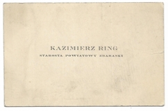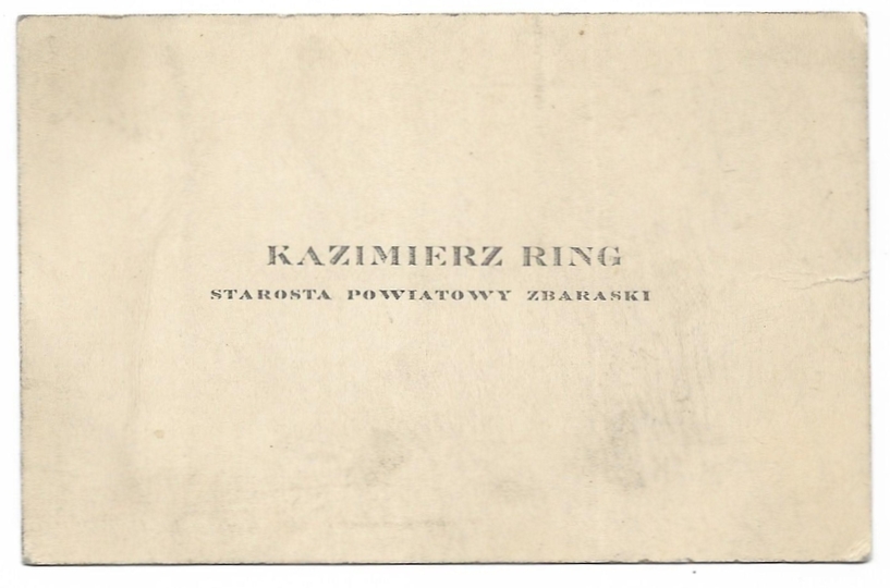 [WIZYTÓWKA]. Kazimierz Ring. Starosta powiatowy zbaraski.