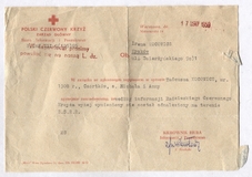 [ZBRODNIA katyńska]. Pismo Biura Informacji i Poszukiwań PCK informujące, że Tadeusz Kocowicz ur. w Czortkowie, wg danych radzieckiego Czerwonego Krzyża, nie został odnaleziony na terenie ZSRR, dat. 17 XI 1959 w Warszawie.