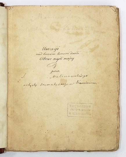 [RĘKOPIS - filozofia, teatr, pszczelnictwo, obyczaje]. Pięć współoprawnych rękopiśmiennych tekstów na różne tematy, z czego 4 pochodzi z I poł. XIX w., jeden z 1865.