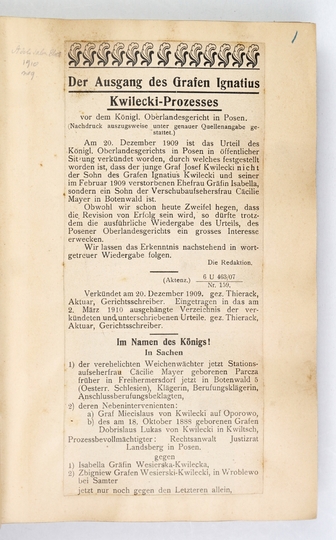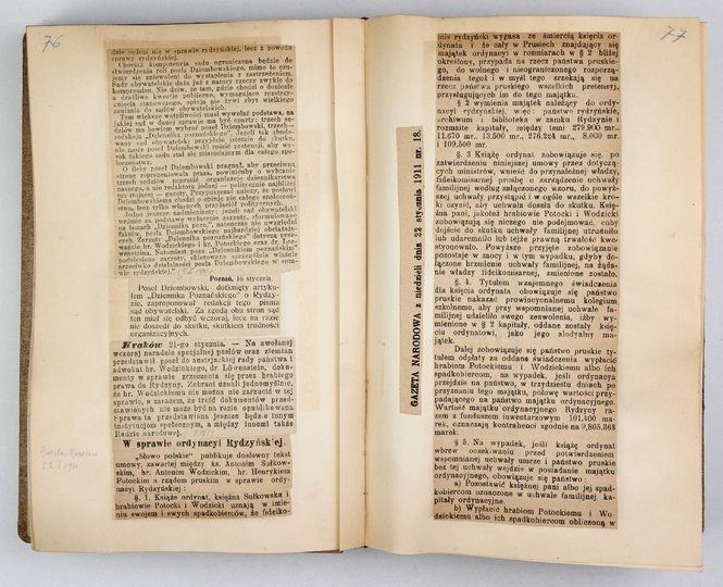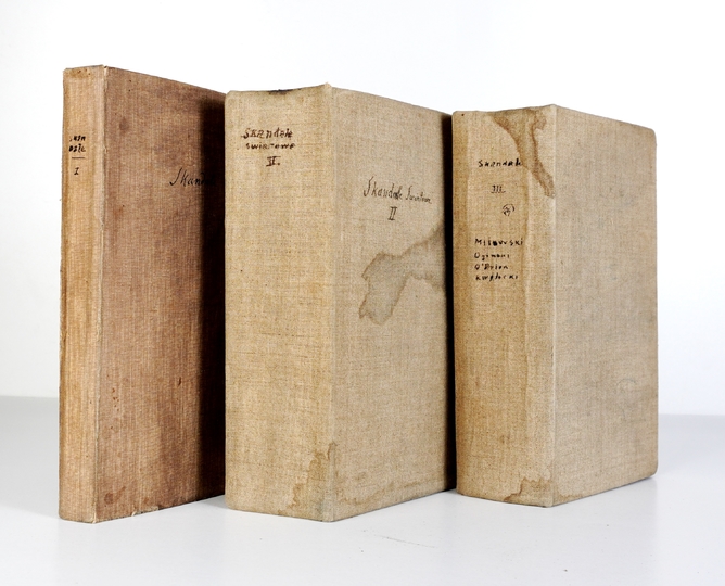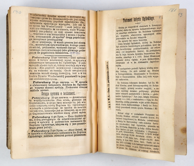 "SKANDALE światowe" - zebrane w 6 tomach sensacyjne wycinki prasowe z dwóch pierwszych dekad XX w., głównie po polsku, także po francuski i niemiecku.