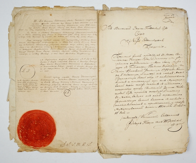 [TUDOROWSCY herbu Tarnawa]. Zbiór dokumentów stanowiących zapewne załącznik do wniosku kierowanego do heroldii (Deputacji Senatu Królestwa Polskiego) o uzasadnienie praw szlacheckich, 1830.
