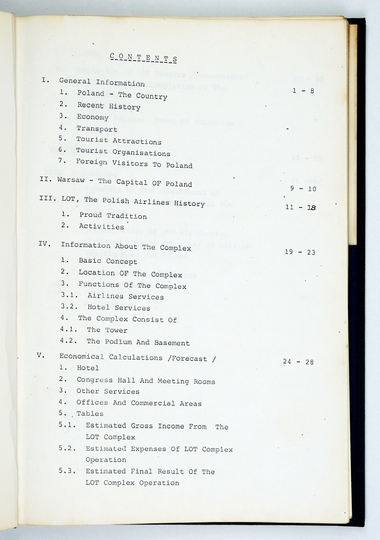 [WIEŻOWIEC Marriott w Warszawie]. Anglojęzyczna, niskonakładowa, wewnętrzna publikacja PLL "LOT" - głównego inwestora powstającego budynku, mająca na celu pozyskanie partnera finansowego, 1983.