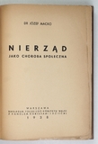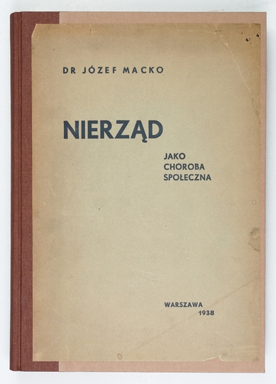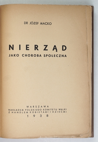 MACKO Józef – Nierząd jako choroba społeczna. Warszawa 1938. Polski Komitet Walki z Handlem Kobietami i Dziećmi. 8, s. [8], 278. opr. wsp. ppł., okł. brosz. naklejona na oprawę.