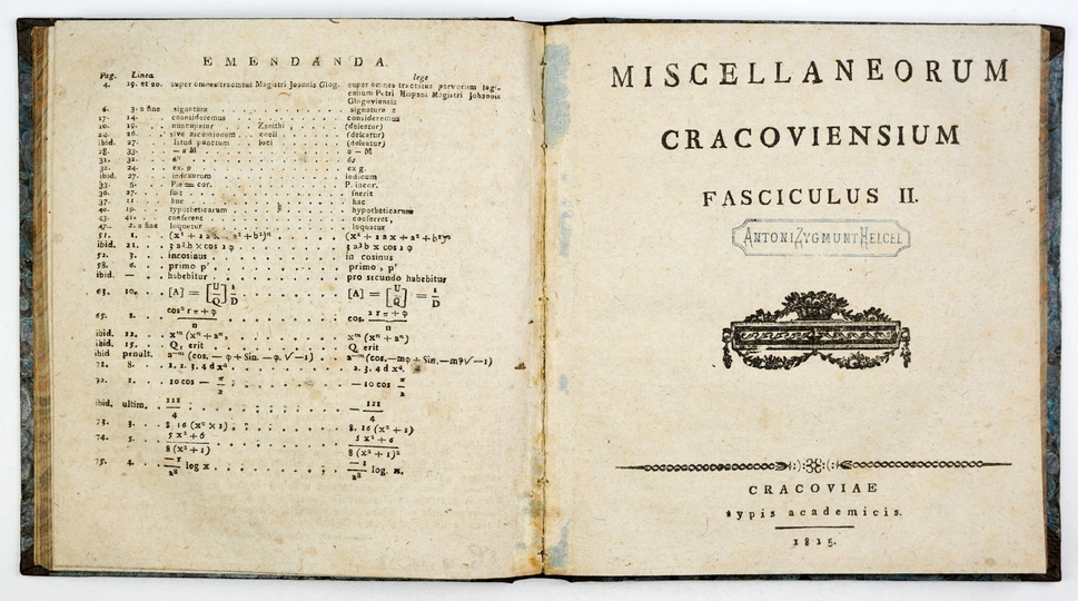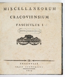 MISCELLANEORUM Cracoviensium. Fasciculus 1-2. Cracoviae 1814-1815. Typis Academicis. 8, s. VI, 113, [1]; [2], 110. razem opr. nieco późn. ppł.
