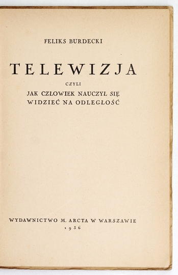 BURDECKI Feliks – Telewizja, czyli jak człowiek nauczył się widzieć na odległość. Warszawa 1936. M. Arct. 8, s. 56, [5], tabl. 6. brosz.