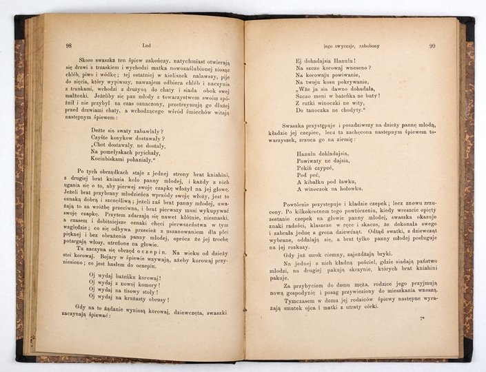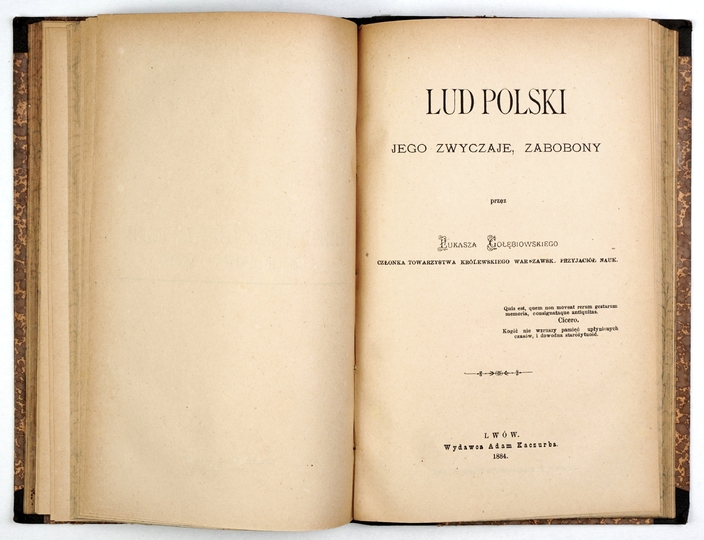 GOŁĘBIOWSKI Łukasz – Lud polski, jego zwyczaje, zabobony. [T. 1-2]. Lwów 1884. Wyd. A. Kaczurba. 8, s. 162; 131. razem opr. nieco późn. ppł. Bibliot. Uniwersalna Arcydzieł Polskich i Obcych.