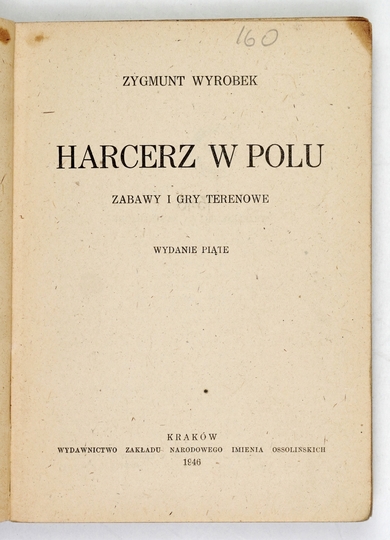 WYROBEK Zygmunt – Harcerz w polu. Zabawy i gry terenowe. Wyd. V [właśc. VI]. Kraków 1946. Ossolineum. 16d, s. 246. brosz.