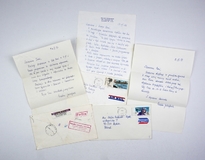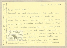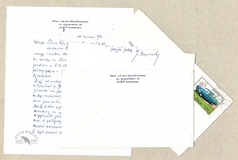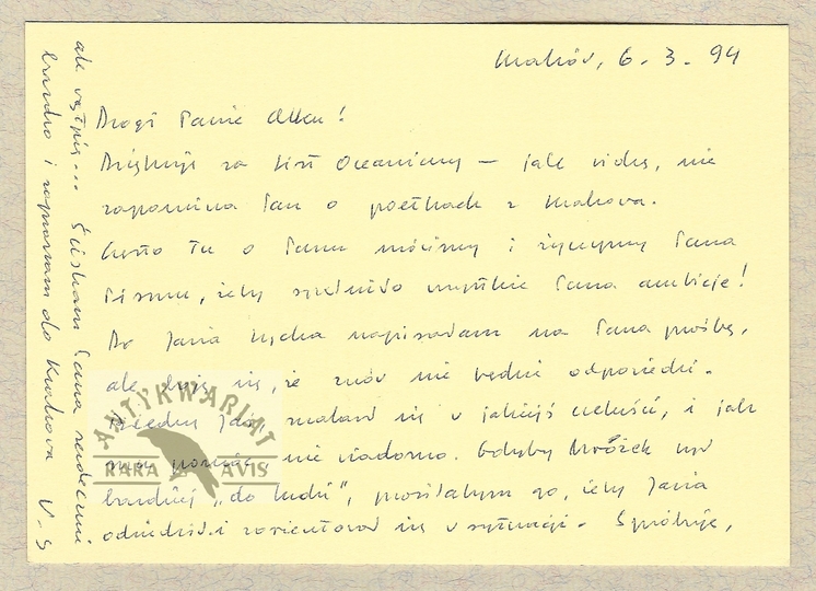 [SZYMBORSKA Wisława]. Wyklejanka z odręcznym listem Wisławy Szymborskiej do Aleksandra Rybczyńskiego w Toronto na odwrocie, dat. 6 III 1994 w Krakowie.