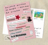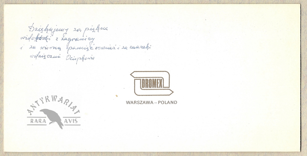 [OCIEPKA Julia]. Odręczne podziękowanie za otrzymane pocztówki i znaczki pocztowe dla nieznanej adresatki w Anglii wpisane w okolicznościowym karnecie, nie przed 1976.