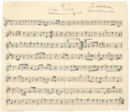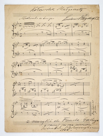 [RÓŻYCKI Ludomir]. Karta papieru nutowego z odręcznym zapisem utworu muzycznego "Kołowrotek Małgorzaty" Ludomira Różyckiego.