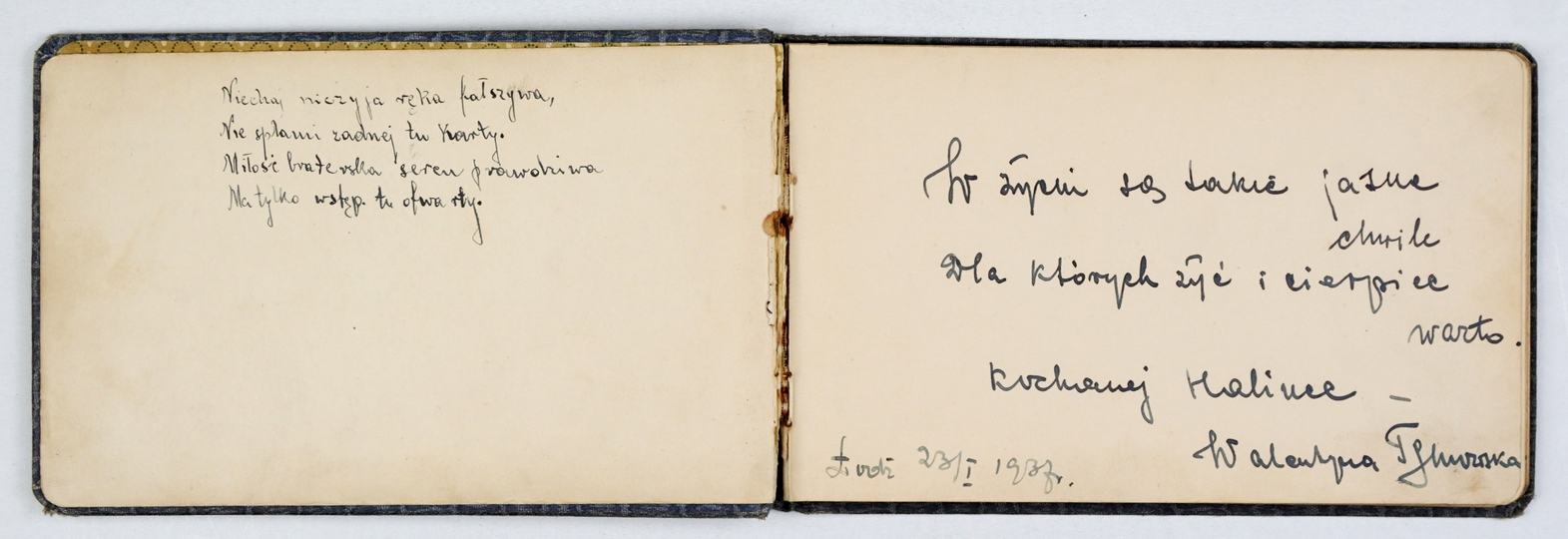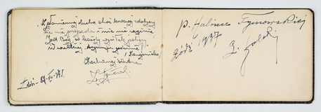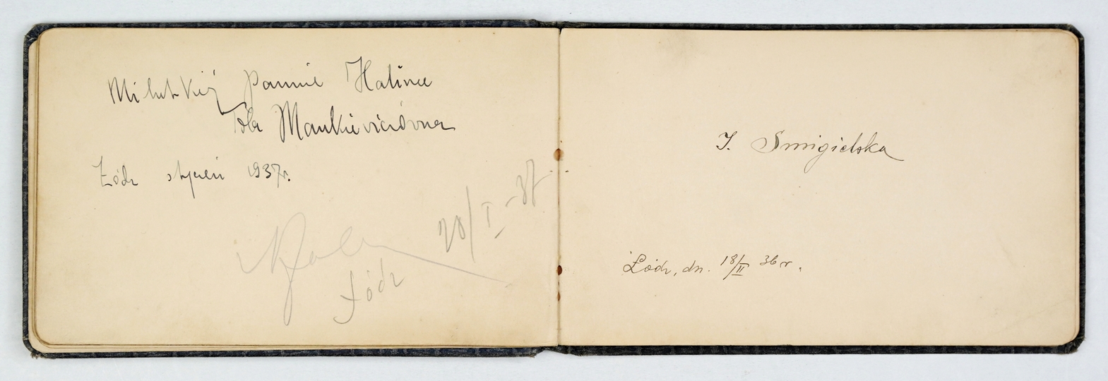 [SOLSKI Ludwik, MANKIEWICZÓWNA Tola, ŻABCZYŃSKI Aleksander]. Wpisy Ludwika Solskiego, Toli Mankiewiczówny i Aleksandra Żabczyńskiego w sztambuchu Haliny Tymowskiej, uczennicy jednej z łódzkich szkół z 1937.