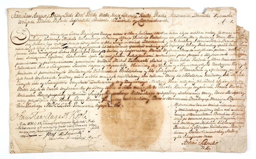 [STANISŁAW August Poniatowski]. Rękopiśmienny dokument królewski na papierze, po polsku, podpisany przez króla, dat. 3 XII 1779 w Warszawie.