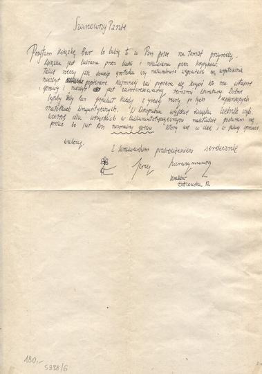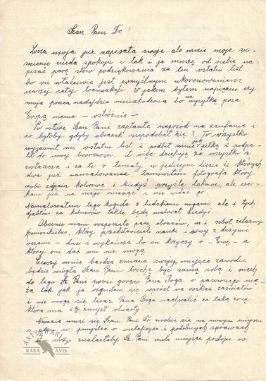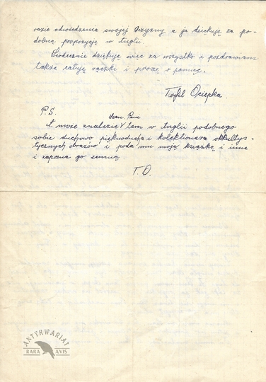 [OCIEPKA Teofil]. Odręczny list Teofila Ociepki do nieznanej adresatki w Anglii, bez daty.