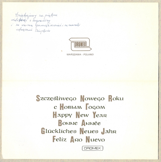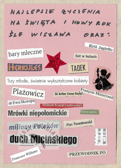 [SZYMBORSKA Wisława]. Wyklejanka z odręcznymi życzeniami świątecznymi i noworocznymi od Wisławy Szymborskiej dla Aleksandra Rybczyńskiego w Toronto, XII 2001?