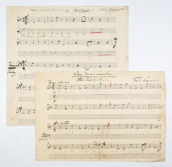 [NOWOWIEJSKI Feliks]. Odręczny zapis nutowy "Nowego hymnu narodowego" autorstwa Feliksa Nowowiejskiego do słów Emila Zegadłowicza.
