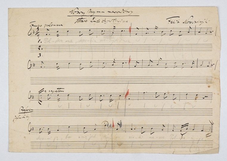 [MAKLAKIEWICZ Jan]. Odręczny zapis nutowy "Hymnu Narodowego" kompozycji Jana Maklakiewicza.