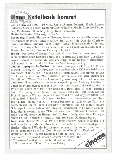 [POLAŃSKI Roman]. Podpis Romana Polańskiego na barwnej ulotce reklamowej do filmu "Matnia" - "Wenn Katelbach kommt".
