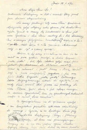 [OCIEPKA Julia]. Odręczny list Julii (Julianny) Ociepki do nieznanej adresatki w Anglii, dat. 12 V 1967 w Janowie.