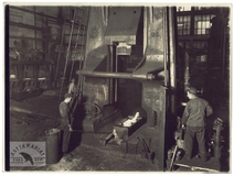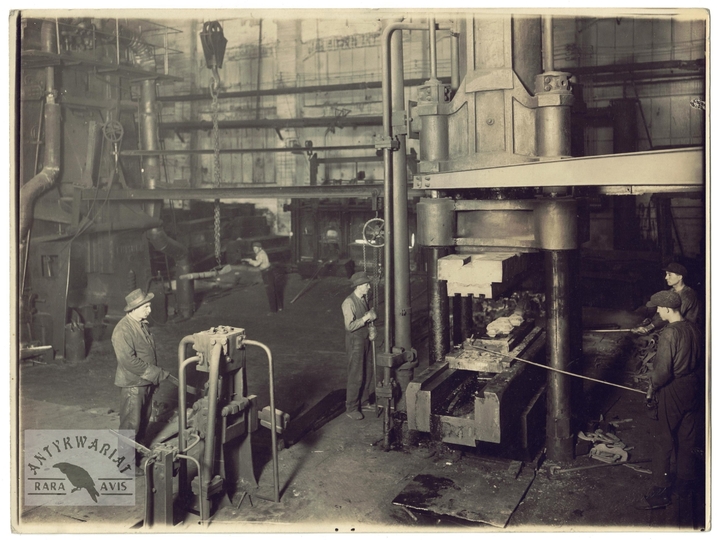 [CHORZÓW - kuźnia w Hucie Bismarcka - fotografie sytuacyjne]. [nie przed 1928]. Zestaw 2 fotografii form. 18x24 cm, autorstwa Maxa Steckela w Katowicach.